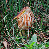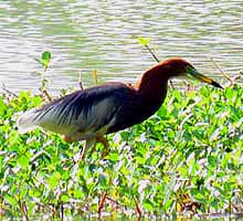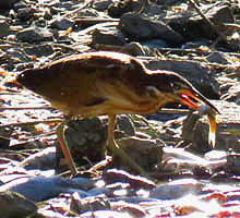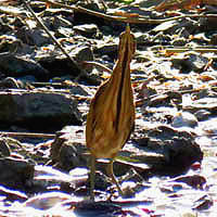 ![]() ヨシゴイ 小魚に狙いを定めて、首を伸ばして、ゲットは一瞬。食後は何度も長い舌を出していた。 |