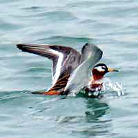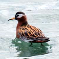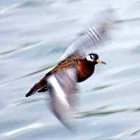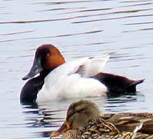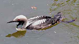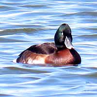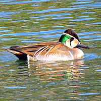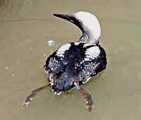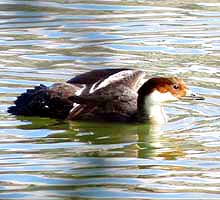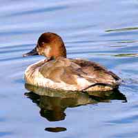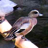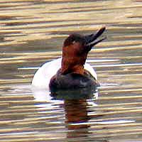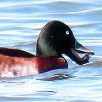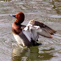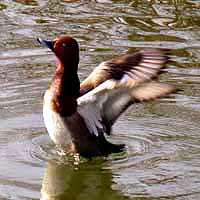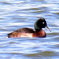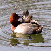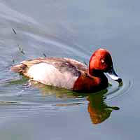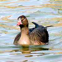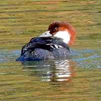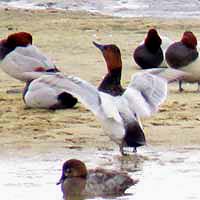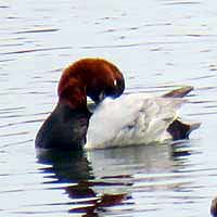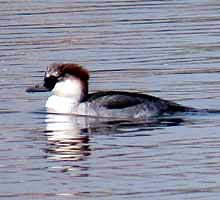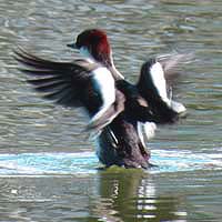 ![]() アカハシハジロ♂ 2011.11.14 淀川に出た時の画像。名前 通り赤い嘴、タコ坊主のような頭が印象的) |