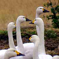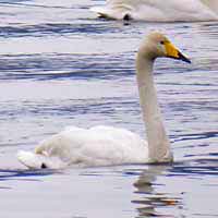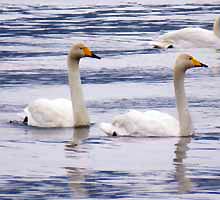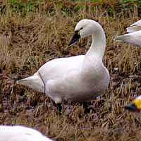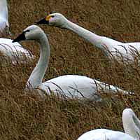 ![]() アメリカコハクチョウ 右向き手前の方が嘴がより黒い 雑種らしきが2・3羽居た |