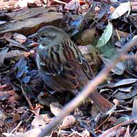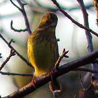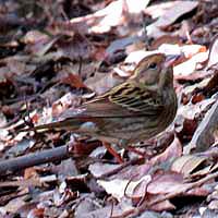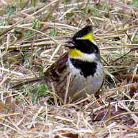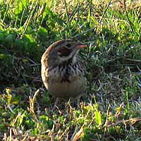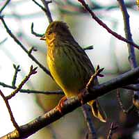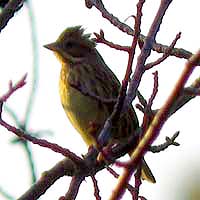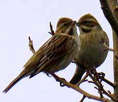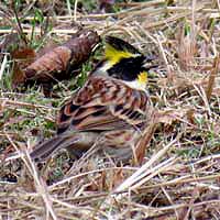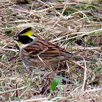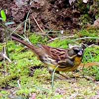 最近時々見られているミヤマホオジロ。毎日のように服部緑地を探索しているOさん、「夕方じっと待ていれば案外出てきますよ」の言葉にその気になって今日は3時過ぎから5時まで待っていたが、結局出てきたのは例のカシラダカっぽいアオジ2羽だけ。黄色みの強い全身を見る限り、アオジに違いない。このアオジと一緒に行動しているというのだが、ミヤマホオジロほんとに居るの? | |