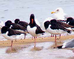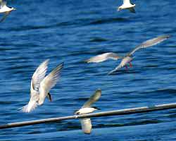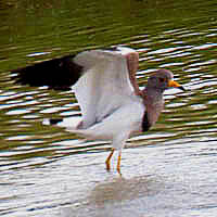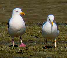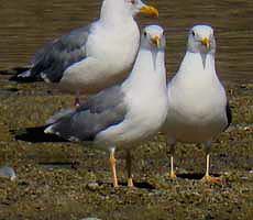 ![]() 左・セグロカモメ(脚ピンク色)右・モンゴルカモメ モンゴルカモメ(脚・嘴が黄色) (前列2羽とも)モンゴルカモメ |
