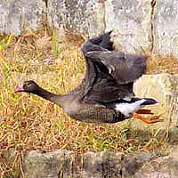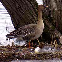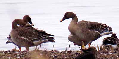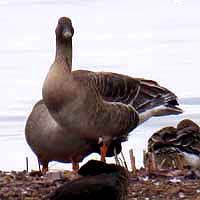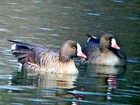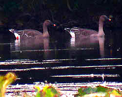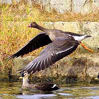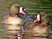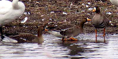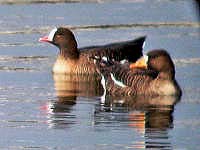 ![]() 2008.2.22 三重県白子町の池に、7羽のカリガネが居た時の画像 左・カリガネ 右・マガン |