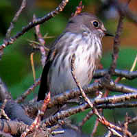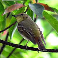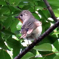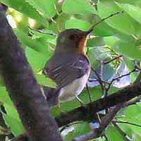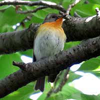 他に良さそうな所もないので結局足は大阪城へ。偶然ムギマキ♂若が市民の森に居るらしい。成鳥でなくとも若で我慢しょう・・。ところがこれが超手強い。何度も見かけるがその早い動きにギブアップ。まともに撮れないままに終わった。ついでに撮った、すぐそばに居るノゴマ♀が唯一達成感あり。オニアジサシ以来、連日の自転車遠出が続いて少々お疲れ気味だな~。 | |