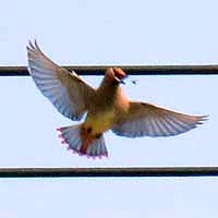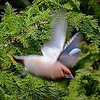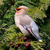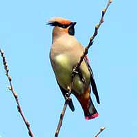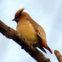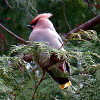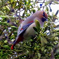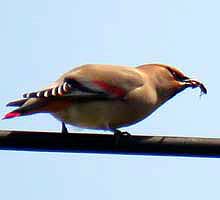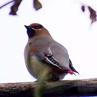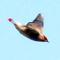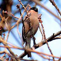 ![]() ヒレンジャク 午前中は3度も出たらしいのに、午後は4時に1羽が出たのみ。 |