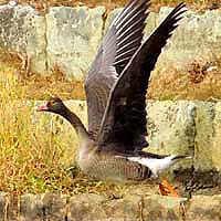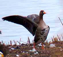 ![]() あれ、足元をオオヒシクイの群れが行く・・ |