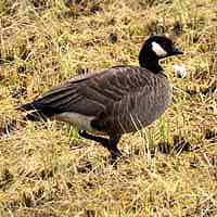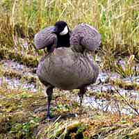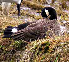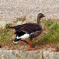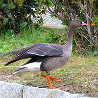 ![]() カリガネ 少し若いようで、嘴から額にかけて白く禿げ上がる部分が小さく、まだらな感じ。 |