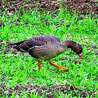 ![]() オオヒシクイ あれゝ、オシドリの群れも・・。嘴の赤いのは♂エクリプス |