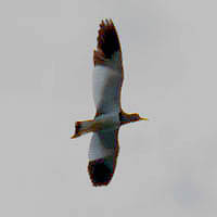 事故から1ケ月、やっとそろそろ出かけようかという気になって、行くなら以前聞いていたカリガネだと思ったが、果たしてまだ居るのか・・?幸い現地に詳しい鳥友さんに聞くと、まだ居るらしいとの返事。一度は諦めていただけに2倍嬉しい。しかし現地へ行くと、誰も居ない。池の中はカルガモとオオバンばかり。地元の人に聞くと、「2週間前には100人くらいが来てたけど、もう居なくなって誰も来なくなったよ」だって・・。そんなバカな・・。鳥友さんに確認したら、「居るはずだ!」仕方なくぶらぶら歩いて池の北側へ行くと、あれ、カメラマンさんが一人居る。狙っているのは・・?「カリガネだ」居るじゃん!それからは撮り放題。池岸の草地辺りに上がったり降りたり、そのたびに多少の飛び姿を時々見せてくれる。池のど真ん中には米粒ほどの白いミコアイサの群れ。どこから見ても超遠いけど、ダメ元で撮っておく。ほんの2時間足らずで十分満足して、バスの人となった。鳥友さん撮れたよぅ、有難う! | |