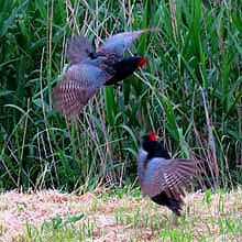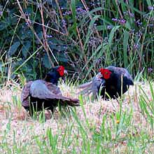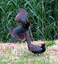 ![]() ヤマセミ 直前は川へダイブしたり撮り放題だったそうだ。 コジュケイ 全部で8羽を確認できた。(写真は6羽) |