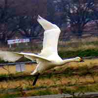 ![]() あぁ、飛んだ!しばらく旋回して隣の畑に着地 オオハクチョウ? 特に右側の子・・ |