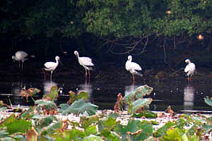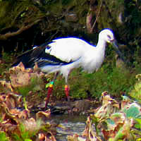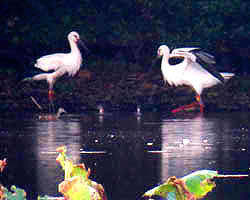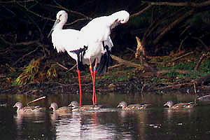 ![]() コウノトリ 全部で6羽、池の一番奥に居て超遠い。すべて足輪付き・・。 |