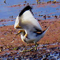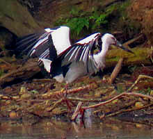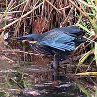 ![]() 魚を捕えた 食べようとしている 嘴の中から舌を出している |