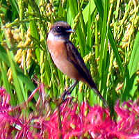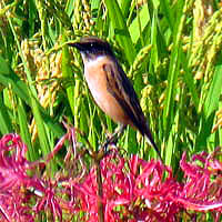 ![]() 【同じく淀川で】ノビタキ♂ ノビタキ♀ |