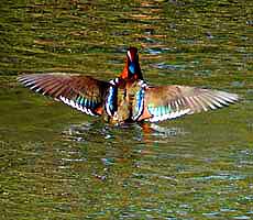 恒例の千里中央公園のオシドリの群れ、よく出ているようなので出かけてみた。昨年は午後2時頃が良いと聞いていたが、今年は?と思いながらも昼過ぎに現地到着。行くと既に出ているようで、数人のカメラマンが観察窓から窮屈そうに撮っている。皆さん踏み台を持参して、自分の背丈に合わせておられる。オシドリは5・6羽の♂♀が優雅に寛いでいる。皆の「飛ぶぞ、飛ぶぞ!」の声にもかかわらず、群れは水面を滑るようにして影に入ってしまった。一幕は終わり、十数分経って二幕目。今度は10羽あまり、さっきの隠れた所から次々出てくる。盛んに羽を羽ばたかせていたが、最後はやはり集団で飛んで元の場所へ隠れた。皆さんこれを狙っていたのだが、いつものカメラと違う私には撮れなかった。でも、羽広げは何枚かあるので、ま、いいか。 (合わせて、千里北公園のミコアイサ♂♀も期待していたが、これはまだ到着していないようだ。) |