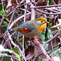 ![]() ソウシチョウ 群れで居た。 手前はクロジ♀ |
