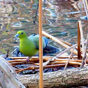 | 2023年12月25日(月) in服部緑地・山が池 アオバトの早朝水飲み |