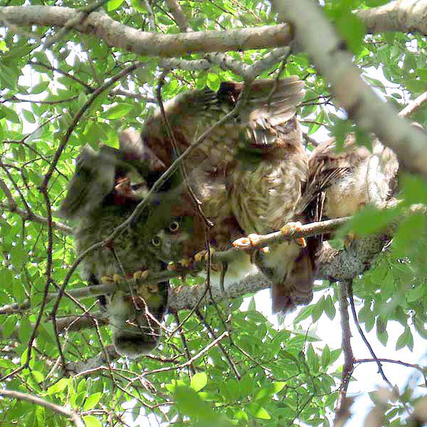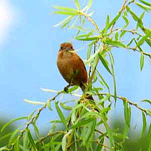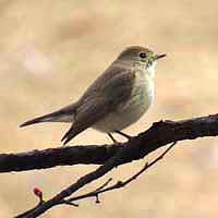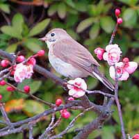 今日も午前中オカリナの練習をし、お昼頃服部緑地を覗くと誰も居ない。あれ、別の場所に何か出てるのかな?常連さん達皆そっちへ行ってるかもしれないと、ぐるり一回りしたが誰にも会わない。途方に暮れて、Aさんにメールで聞くと、折り返し電話で、「猪名川公園にムギマキ♀」と返事が来た。わぁ、大変!大急ぎで駆けつけると、いつもの猪名川組を含めて20名近くが公園内のいつもの場所で上を見つめている。例によって素早いが、何度かましな枝に止まり、それなりに撮れた感がある。今季初のムギマキ、♀だが結構色が濃くて、或いは若♂かも?午後4時、まだ追いかけている人たちに後ろ髪を引かれる思いで、帰宅した。 | |