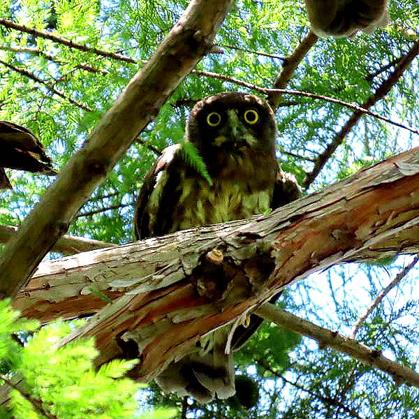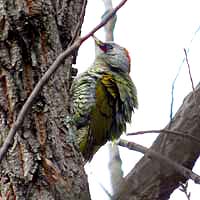 昨日の画像を整理していたら、珍しくTさんから「小鳥の森にアオゲラが居る」と電話が入った。え、それは大変・・とすぐに駆けつけたら、ここの常連さんたちが集まってカメラを向けている。よく見えるところから少し移動して、今はちょっと見えずらい。何とかピンポイントで見える場所を見つけて連続」シャッターを押す。最近時々現れるとか・・。やっぱりこの公園内のどこかに居ついてるんだろう。 | |