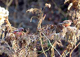![]() ベニマシコ♂2羽 実際には4・5羽居たそうだ ベニマシコ♀ |