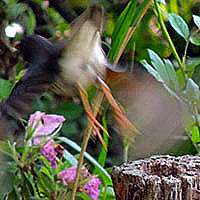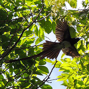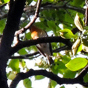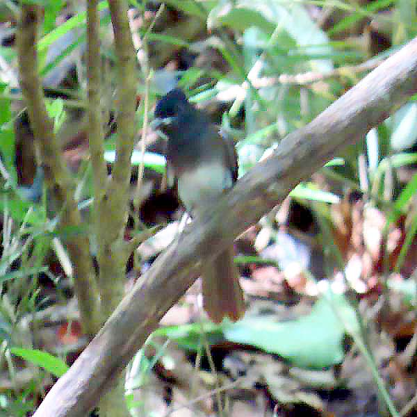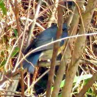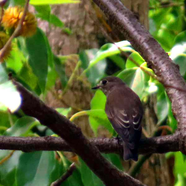 今日も服部緑地。いつもの水場でなく、みなさん横手の木を見上げている。今日はどうやらマミチャジナイとクロツグミが良く来るらしい。しばらく待つと、「マミチャが出てるよ!」と言われて多急ぎでレンズを向けたら逆光で真っ黒け。ピントは合ってそうだから修正できるかなと思ったが、ちょっと無理だった。念のため証拠を。 | |