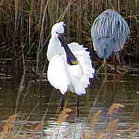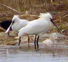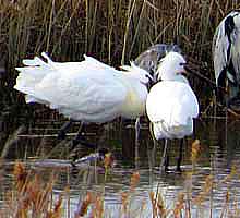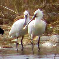 ![]() ヘラサギ2羽 しばらくして飛んで、少し近くの池へ降りた |
