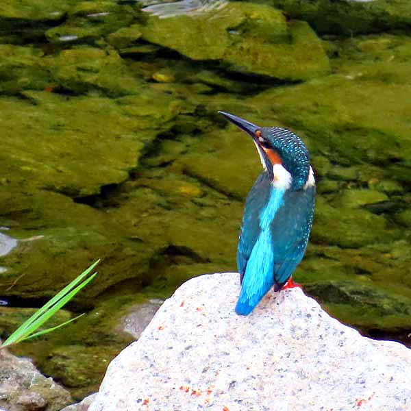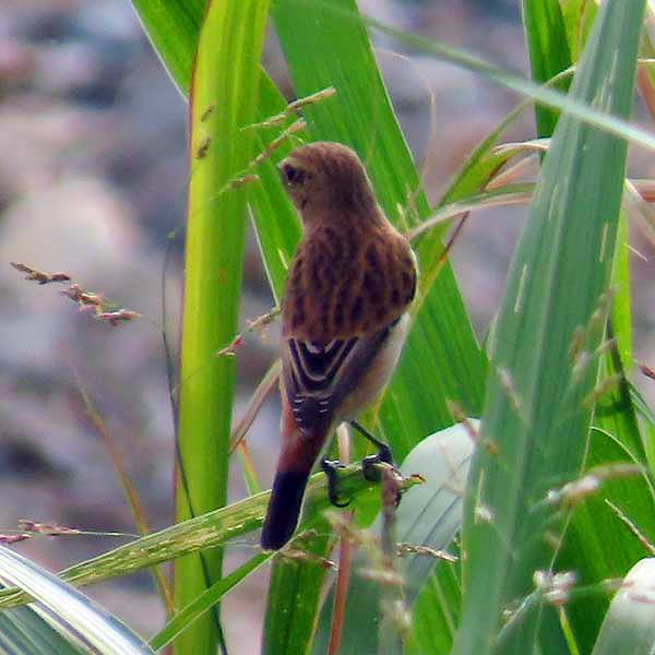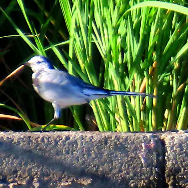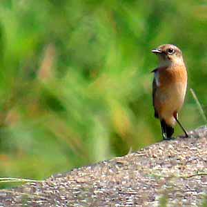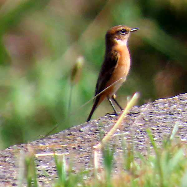 先日今季初のノビタキを見たときに、同時に居たセッカばかり撮れて、ノビタキは1ショットしか撮れなかった。勿論セッカも大好きだが、この時期やはりノビタキが撮りたい。そんな思いがずっと喉元につかえていたが、やっと思う存分ノビタキと遊べた。橋下すぐ傍の以前からの場所だ。今回は何故か河原の護岸のコンクリートの角に居ることがやたら多い。3羽がずらり並ぶ事も度々あり、地べたで虫を探していたりする。できれば草や木枝止まりの方が好みなんだけど・・。しばらく粘っていたらやっと草の中に入ってくれた。喜んでしばらく撮っていると、鳥友さんから、「服部緑地にオオルリ♂が出てるよ」と教えられた。ノビタキも結構撮ったしそろそろ堪能するころで、すぐに切り上げた。 | |