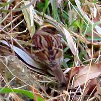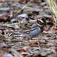 先日のミヤマホオジロとカシラダカを鳥友さんに見せてあげたくて、二度目のきずきの森へ。今日は駅から二人でタクシー(千円弱)で花屋敷グランドの方から入る。ポイントに着きカメラマンに聞くと、今日はむしろベニマシコ狙いの人が多いようだ。ミヤマホオジロは居るがカシラダカは見かけないと・・。とりあえずミヤマホオジロはチャンスはあるなと一安心。しかしどうもタイミングずればかりで、行くところ飛んだ後ばかり。まして鳥友さんには少し手に余る代物。別行動の時に出て、結局私だけが撮れたようだ。代わりにベニマシコの♂♀が頻繁に出て、これは鳥友さんも一応撮れたかな?帰りはタクシーで来た道を徒歩で急坂下り。駅前の店で昼・夕食兼用の食事をした。 | |