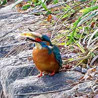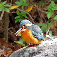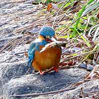 カワセミ♂ 丁度魚をゲット、美味しそうに食べた |