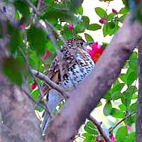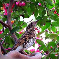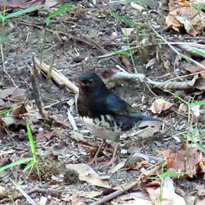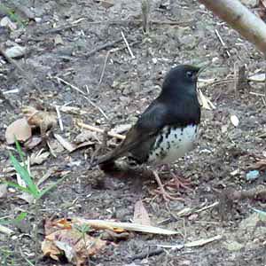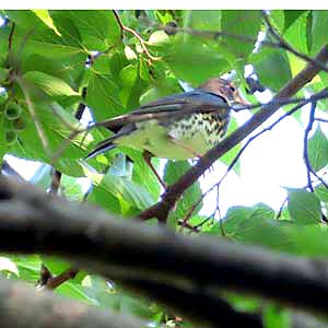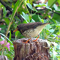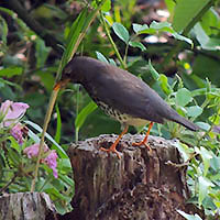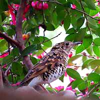 ![]() クロツグミ♂若(背中の羽が黒っぽい) 枝止まりのと同じ個体? |