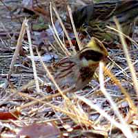 ミヤマホオジロ♂ 成鳥2羽 よく出てたがタイミングずれで、最後の4時過ぎにゲット |