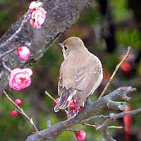 しばらく南千里公園のオジロビタキにご無沙汰いているうちに、梅の花がらみの」いい感じになっているようなので、行ってみた。珍しく猪名川の常連さん達と一緒になり、要領よく撮れた。30分余りもするとたっぷり撮れた。猪名川組に樫木公園のアカゲラ♀を教えてあげたら、私より少し早く切り上げて居なくなった。てっきりアカゲラの方へ行ったと思い、追いかけたが、樫木公園には来ていない。一人探してみたが今日は一向に気配がない。大分後になってやっと猪名川の常連さん達が来たら、すぐに、「声が聞こえる!」 1か月前の時とほゞ同じ場所あたりに前回と同じような止まり方で出てきた。動きがなく、わずかに顔の向きが変わる程度。実は今冬はここにもう1羽居るらしく、相手は♂なのか同じ♀なのか、はたまたアオゲラだという人もいて、情報が錯乱している。そして、今日、先ほど、公園を散歩している人から「千里北公園にアカゲラの♂が居るよ」と聞いた。半信半疑ながら、後日確認に行かなければ・・。 | |