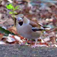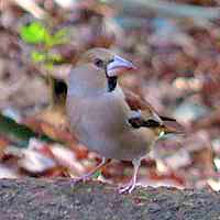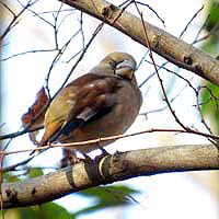 ずっと行きたいと思っていた大泉緑地。かなり前からコイカル♀が出ている。一昨年も確か出てたのでは?昨日は見れなかったそうで、心配ながらもダメ元で出かけた。ところが行くなり、「出てるよ!」しかも枝止まり。わぁ、願ったり叶ったり、結構いい感じでたっぷり撮れた。でも、何故か多くのカメラマンは知らん顔で手持無沙汰な様子。木止まりなんて撮り飽きた・・、そうだ。木の根っこの窪みに水を入れて、アトリの群れなどに混じって水を飲みに来るコイカルを狙っているそうだ。一日に1度あるかないかのシーンなのだそうだ。私も木止まりコイカルを相当撮った頃、ベニマシコが出てると聞いてついそちらへ移動している間に、肝心のコイカルの水飲みシーンを外してしまった。あぁ、後悔後に立たず。ついにコイカルは再度降りてはくれなかった。 | |