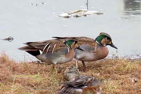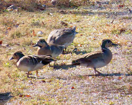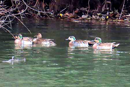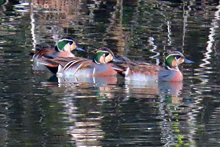 ![]() 【中池にて】トモエガモ♂3羽 光線がギラギラできれいな緑色が出ない・・ |