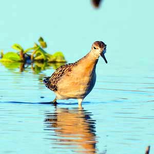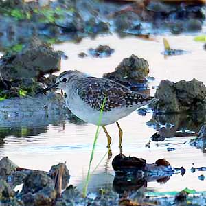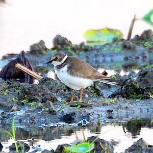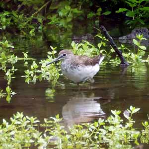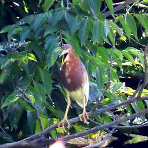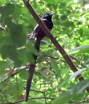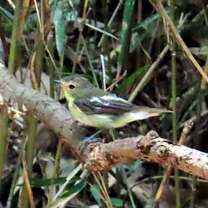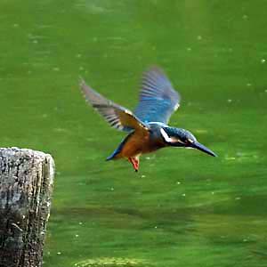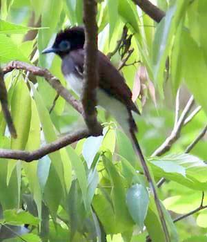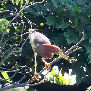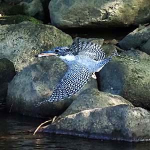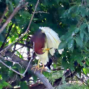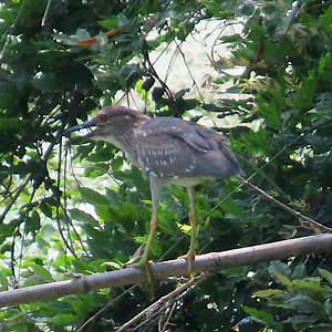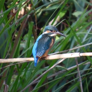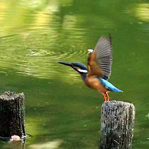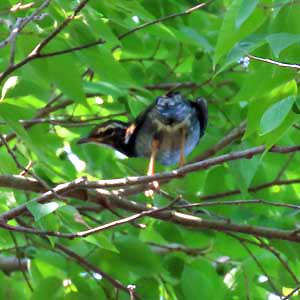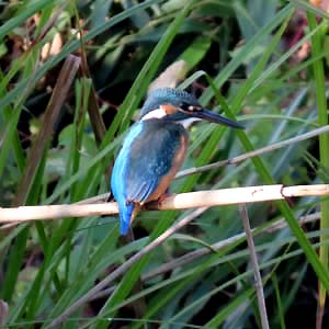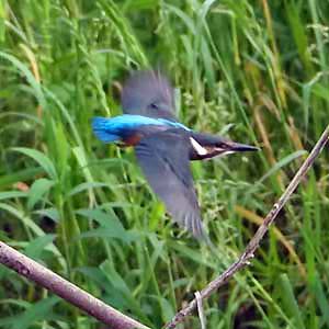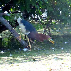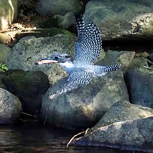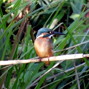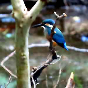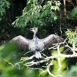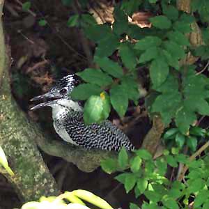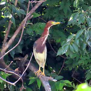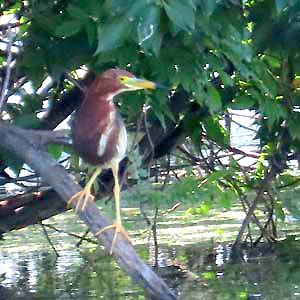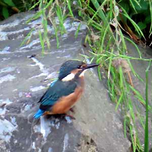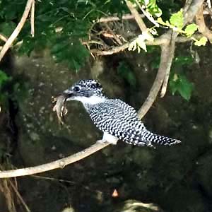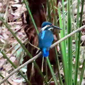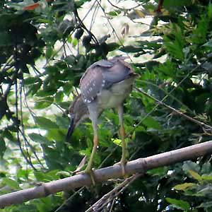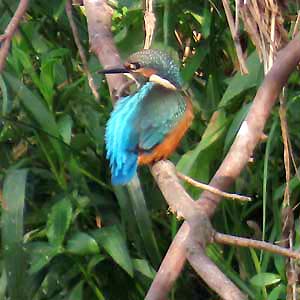隠れている時は水面に垂れる枝に止まって休んでいる |