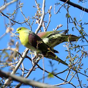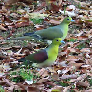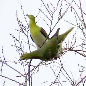 ![]() アオバト♀ ♂2羽 ♂・上 ♀・下 |