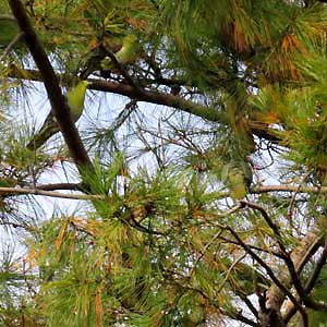 夕べは鳥友さんから送られた素敵なクリスマス動画を、いっぱいの友達に転送して、そのやりとりで忙しかった。明けて、今日はクリスマスの日。別に変わったことはないけれど、空気感がなんとなく特別な日を思わせる。朝食を食べ終わった頃、「ソウシチョウ、クリスマスバージョンの餌に群れる」と、また写真付きメール。嬉しくなっていってみると、わぁ、素敵!柊や南天で飾られた赤い実を食べているソウシチョウが、まさしくクリスマスにふさわしい華やかさ。「Merry Cristmasu !」 ついでに小鳥の森を覗くと丁度ルリビタキ♀が出てきてラッキー。一回りしてから帰ろうと、円形花壇側へ出ると、「うん、シメ?」♀1羽だけど、今季初ものだ。おや、階段の所に皆さんがのんびり休憩中?近づくと、「アオバトが居るよ」目の前の高い松に止まってるらしい。「あ、居た!」先ず最初の1羽が見つかると次々に4・5羽が止まっている。わぁ、今季初だぁ、ありがとう!今日は暖かくて皆、とても良い顔してる。私は家に一杯画像整理が溜まっているので、早々に帰った。 |