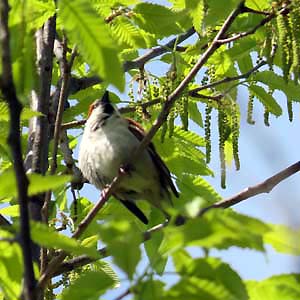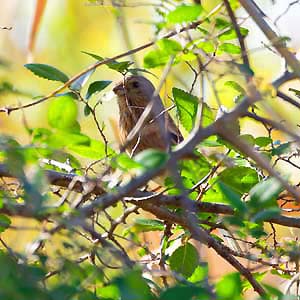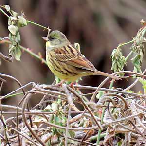 ![]() ホオジロ♂ ♂は目の回りが真っ黒 胸・腹は斑点がなく茶色 ホオジロ♀ |