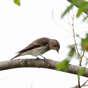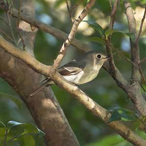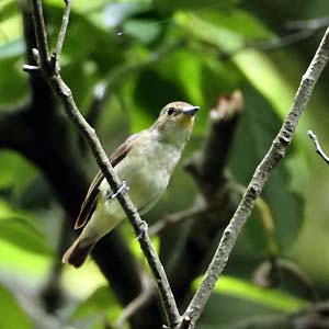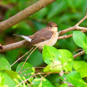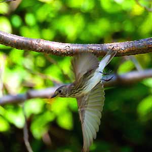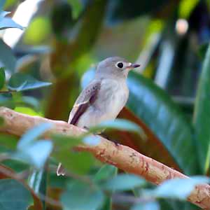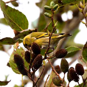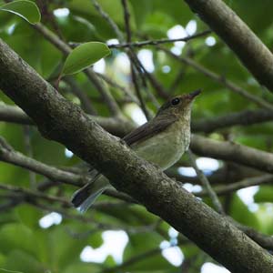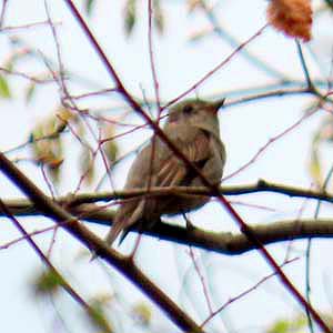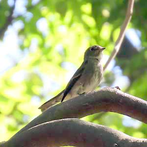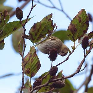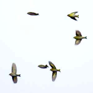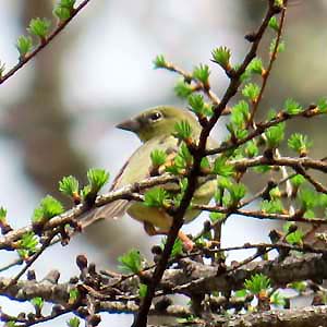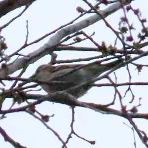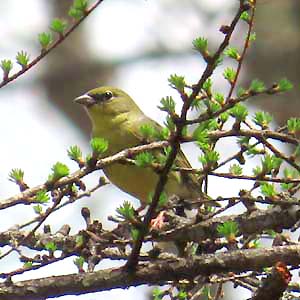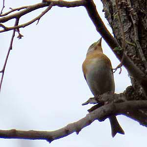 昨日は偶然アオバトに会えたので、やはり今日も緑地の小鳥の森へ行ってみた。昨日は大阪城でオオルリが出たそうなので、或いは小鳥の森でも出てるかも・・と期待したが、残念ながらいつも通りのものばかり。ふと樹々の間に小鳥が群れているのに気が付いて双眼鏡で見ると、小鳥より少し大きいアトリの群れだった。和他紙的には今冬初めて会うので、これは撮っておきたかったが、残念ながらひどい枝被りで、しかもお腹側ばかりできれいなアトリの羽模様が撮れなかった。 | |