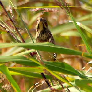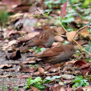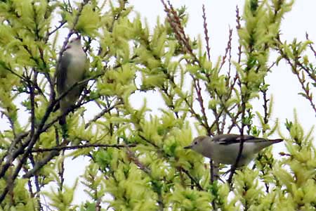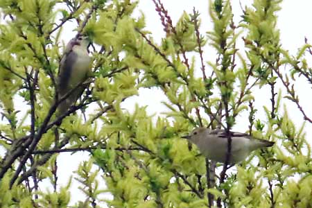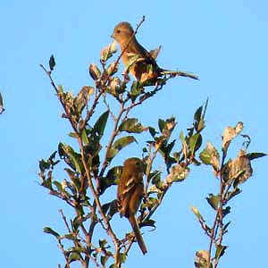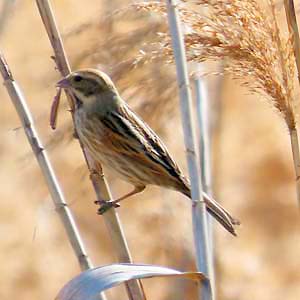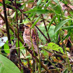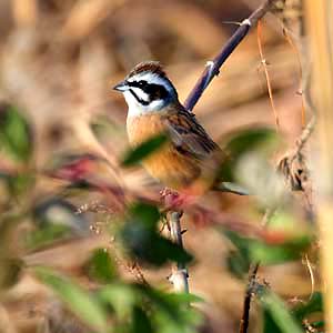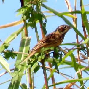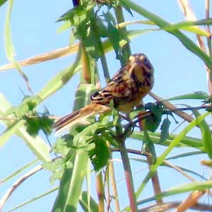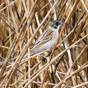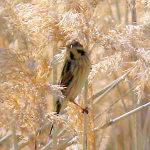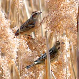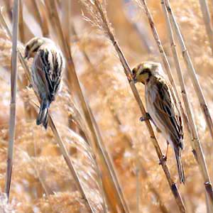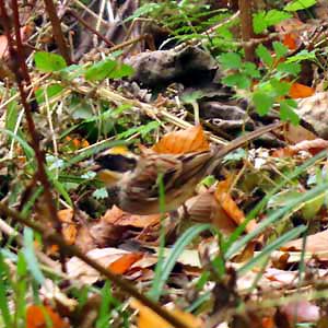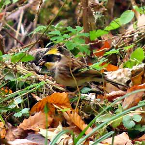 ![]() 上・ホオジロ♀ 下・オオジュリン オオジュリン 2羽 模様がホオジロとは違う オオジュリン |