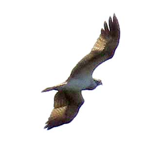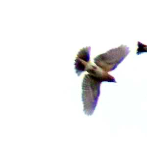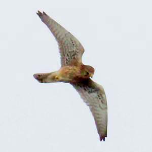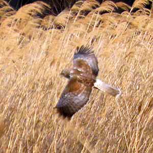 同じ日、息子は近場の高槻方面へ。三島江のホオアカは居ず、タゲリの場所まで行って、先ずは1種をゲット。今日のメイン、鵜殿を目指した。未だ明るいうちは当たりをウロウロしながら歩いていると、モズが居て、見ているともう1羽、ついでに撮っておいた。撮りながら、何か少し違う感じがしたが、軽く、「まぁ、いいか」(実はアリスイという鳥で、初見初撮りである) やがて4時になり、いよいよハイイロチュウヒの出番だと思ったが、何せ初めての場所なので勝手が分からない。土手をウロウロし、そのうち下へ降りて歩き回っている内にどんどん陽は落ちて行き、ふと見たら猛禽がどんどん遠ざかっていくところ。かろうじて1枚だけ、どうやらハイチュウの♀らしいのが写っていた。ま、初めてにしては上々じゃないの・・。 |