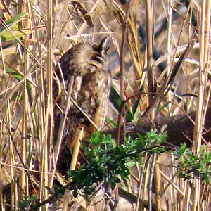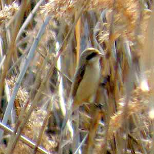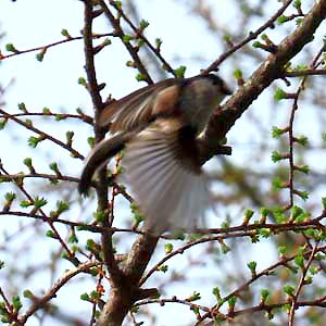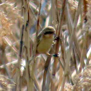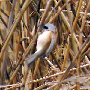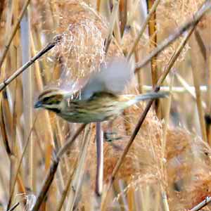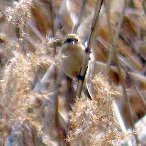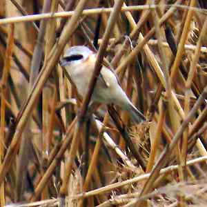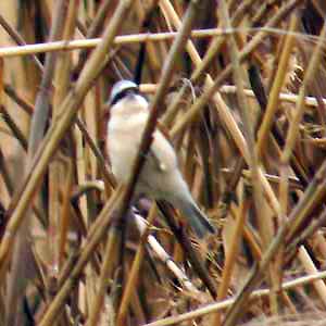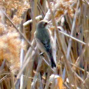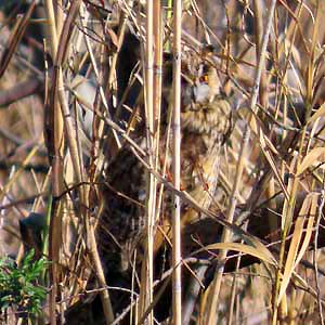 ツリスガラ狙いは3度目。よく出るようになったと聞き、今日こそはと意気込んで今迄で一番早く10時頃には現地に着いた。カメラマンもそれなりに多い。さすがにオオジュリンはもよく出ているが、すっかり頭が黒くなっている。そこで重大なことに気が付いた。「あかん、バッテリーの予備を忘れた!」今入っているのは前回の使い残りで、大概すぐに切れてしまう。「わぁ、ショック!」オオジュリンなんか撮ってる場合じゃない・・・。間もなく本命のツリスガラが現れた。周りからシャッター音が連発。私も必死で本命の動きを追いかけた。多分連写で3、4ショット位、何とか撮れてる実感ありの段階で、カメラが閉じた。電源切れ・・・だ。あぁ、もう少し残っていて欲しかった・・・。すごすごと帰った。後で鳥友さんに聞くと、私が帰った後、目の前に近づいてきて、皆さん良いのが撮れて満足して帰ったそうだ。う~ん、ついて無いよぅー。 | |