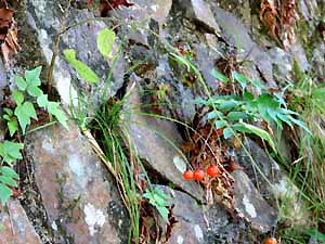 息子と武田尾へ行ってみた。以前は良くヤマセミ狙いで来ていた。そこで大物のコジュケイの家族・集団12羽連れが撮れた時は最高に嬉しかった。そんな過去の思い出を抱きながら言ったのだが、午後の小道はまるで不調。一応鳴き声は聞こえるが、まったく表に出て来ないのだ。「せめてルリビタキの♂だけでいいから・・」と思うが、まるで絶望的。そんな中でも、息子には色々な鳥の声が聞こえ、目に入るようだ。気配を感じた所をやり過ごし、間をおいて戻ると、「お母さん居るよ!ミソサザイみたい!」しばらくはなかなか確認できなかったが、息子のカメラの方向を穴のあくほど見つめていると、かすかに鳥の動きが見えてきた。「わぁ、ミソサザイだわ!」時間にして3分あまり、予想外に長く居てくれてたというのに・・、私の撮れた写真はすべて話にならないボケ写真。「お母さんには無理やわ・・」他にもジョウビタキ♂やルリビタキ♀が一応出たのだが、ついに撮れずじまい。ま、息子が代わりに撮ってくれたからいいかー。 |