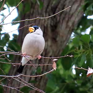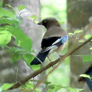 ![]() 【木漏れ日の道で】イカル アオゲラを待っている間に現れた |