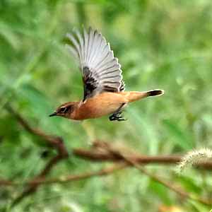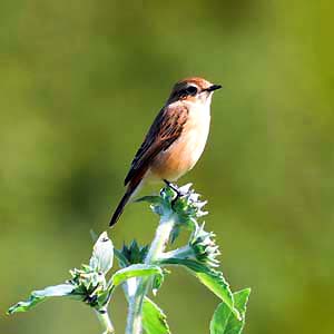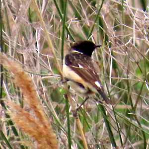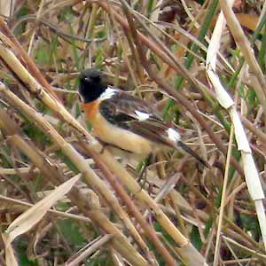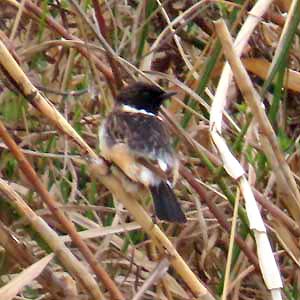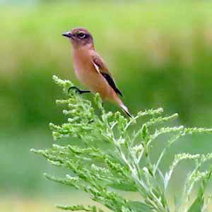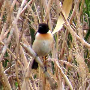 今日はヘルパーさんの日で15時まで出られない。用が済んで、さて今からどこへ行こうかと思案したが、心はすぐに少しご無沙汰の猪名川と決った。川の土手沿いをまずは農業公園に行こうと走っていると、橋の手前の河原に常連さんたちが居る。「??きっと何か出てる」慌てて降りていくと、なんと、ノビタキが2羽でているって・・。たしかに、真っ黒な♂のようだ。うおッ、ラッキー!手ごわいながらも出ずっぱりだ。ほんの1時間弱でたっぷり撮れた。まさしく「犬も歩けば棒に当たる」 (明日は間違いなく雨の予報。多分雨の後にはもう居ないだろう) |