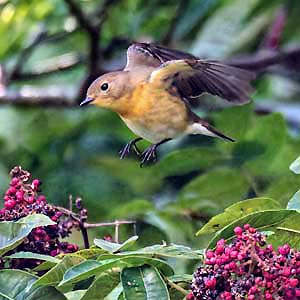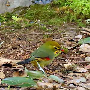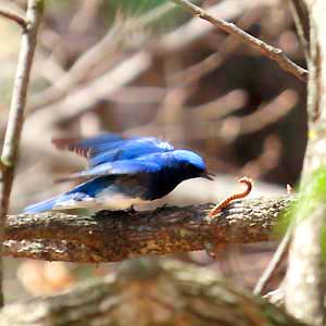 ![]() オオルリ♂成鳥 ムカデ?を捕っている |