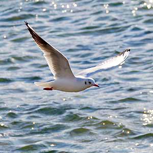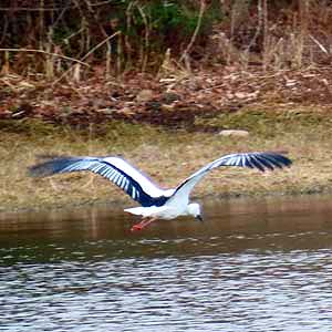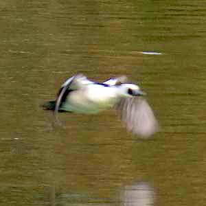 年明け早々の2日の朝、起き掛けに「迷走神経反射」という症状に見舞われた。先に腹痛がきて、直後に突然の吐き気となり、その後失神寸前の状態になり、冷汗がどっと吹き出た。余りの恐ろしさに訳が分からず、「これは普通じゃない・・」と思った。いったい何が起こったのか、この後どうなるんだろうと思うと矢も楯もたまらず、救急車を呼んだ。病院で色々検査をし、点滴を受けて、しばらく後、前記の「迷走神経反射」という症状だと診断され、大至急駆けつけてくれた息子に連れて帰ってもらった。 その後、7日には自転車でバランスを崩して、傍のガードレールに胸を強打して、レントゲンを撮ったら、肋骨を骨折していた。その数日後、風邪をこじらして、今も痰が喉に引っかかって、咳が絶えない。 まったく、「踏んだり蹴ったり・・」気が滅入る一方で、気が変になりそう。 「これはあかん!」余りの鬱状態に我ながら危険を感じ、「とにかく外へ出よう」と服部緑地に出かけた。ほゞ1カ月近く来ないでいると、勝手がまるで分らない。カメラマンとも会わず、誰かに聞いたような気がしてうづわ池を覗いたら、何と完ぺきなパンダ模様のミコアイサ♂の成鳥が3羽「待ってたよう!」というように、キレッ・キレのハンサム姿で歓迎してくれた。なんと、多分初めての飛び姿まで撮らしてくれた。やっぱり、家に閉じこもってたら、ア・カ・ん! |
