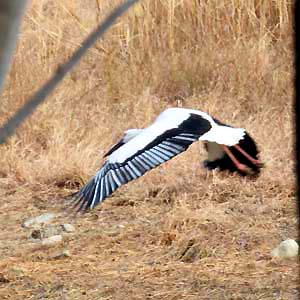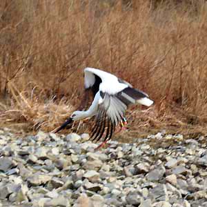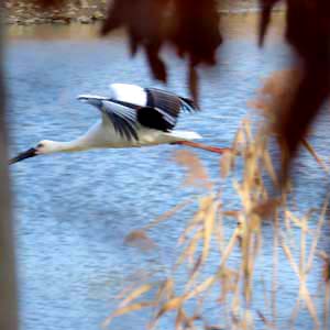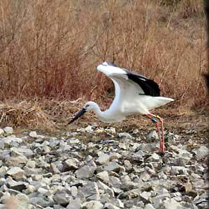 偶然、昆陽池にコウノトリ2羽の情報を得た。たしか、一昨年にも入ったっけ・・。やはり2羽だったはず・・。コウノトリといえば、20年前頃には絶滅の危機が騒がれて、幻の鳥のような印象だった。当時初心者の私はベテランさんについて豊岡へ行き、土地の人に遠慮しながらコウノトリを撮った覚えがある。その後順調に個体数を増やし、今や他府県にもあちこちに飛来しては地域の人を喜ばせている。 体調が万全でない私だが、昆陽池なら伊丹駅からバスで簡単に行けるので、思い切って出かけてみた。前回と同じ辺りと思いきや、2羽が別々でかなり離れているので、相当の距離を歩かせられた。しかも、やっと居る場所に着いたとたん飛んで移動、またもや今来た道を戻るなど、結構疲れた。1羽を撮った後、何とか2羽一緒のところが撮りたくひたすら待った。やっと午後3時過ぎ、2羽が近づいて来たが、ツーショットが撮れるにはなお距離があり、じらしも極限の頃、2羽がそれぞれ飛び出して、結構長く飛び続けた。これはラッキー。お陰でなんとか飛びの様子はたっぷり撮れて、退散。あ~、疲れ過ぎだぁ! |