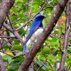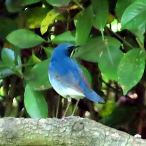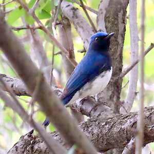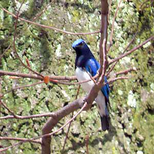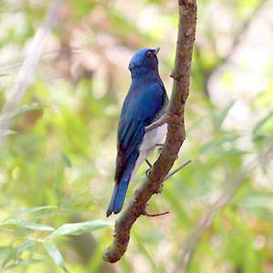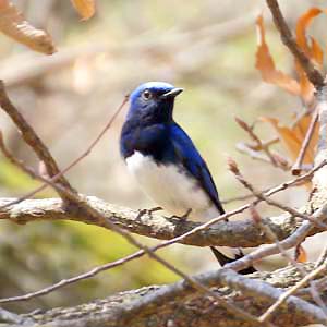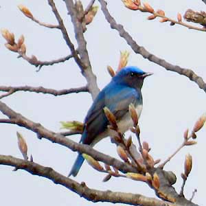 やっと待望のオオルリ♂成鳥が南千里公園に入った。例年よりかなり早い夏鳥の飛来だ。毎朝10時頃にはいつも情報を挙げてくれるブログを見て慌てて行ったのだが、すでに30人位のカメラマンが右往座往している。今日で3日目と書いてあったが、大阪城で確認された同じに入ったことになる。そのオオルリ様、驚くほど愛想良しで、ほんの1時間ほどの間ずっと出っ放しで、いい所に止まるので、たっぷりの撮り放題。とってもきれいな子で、これからの夏鳥幸先良し! ところで、偶然聞いた話、服部緑地に今冬確認できなかったルリビタキの♂が、今日小鳥の森の裏手に出ているそうだ。「え、うそ!」これは一大事。すぐにマイフィールドへGO! |
