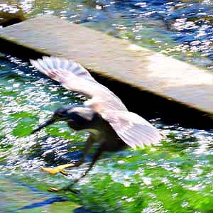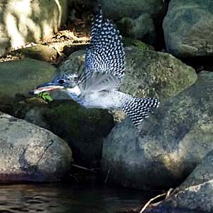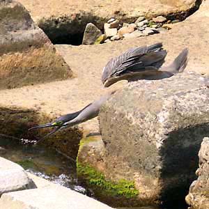 ![]() 案の定、魚を両足に捕まえて戻って来た |