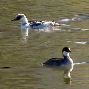 ![]() 「新宮池」ミコアイサ♀ ♂ 少し若 ♂成鳥 |